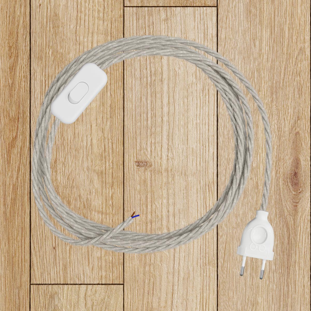 Câble textile : 1.64mt. [XZ2TN01] Câble textile Blanc mélangé lin - L'Original Creative-Cables - TN01 tressé 2x0,75mm / 3x0,75mm - N° of cores: 2x0.75