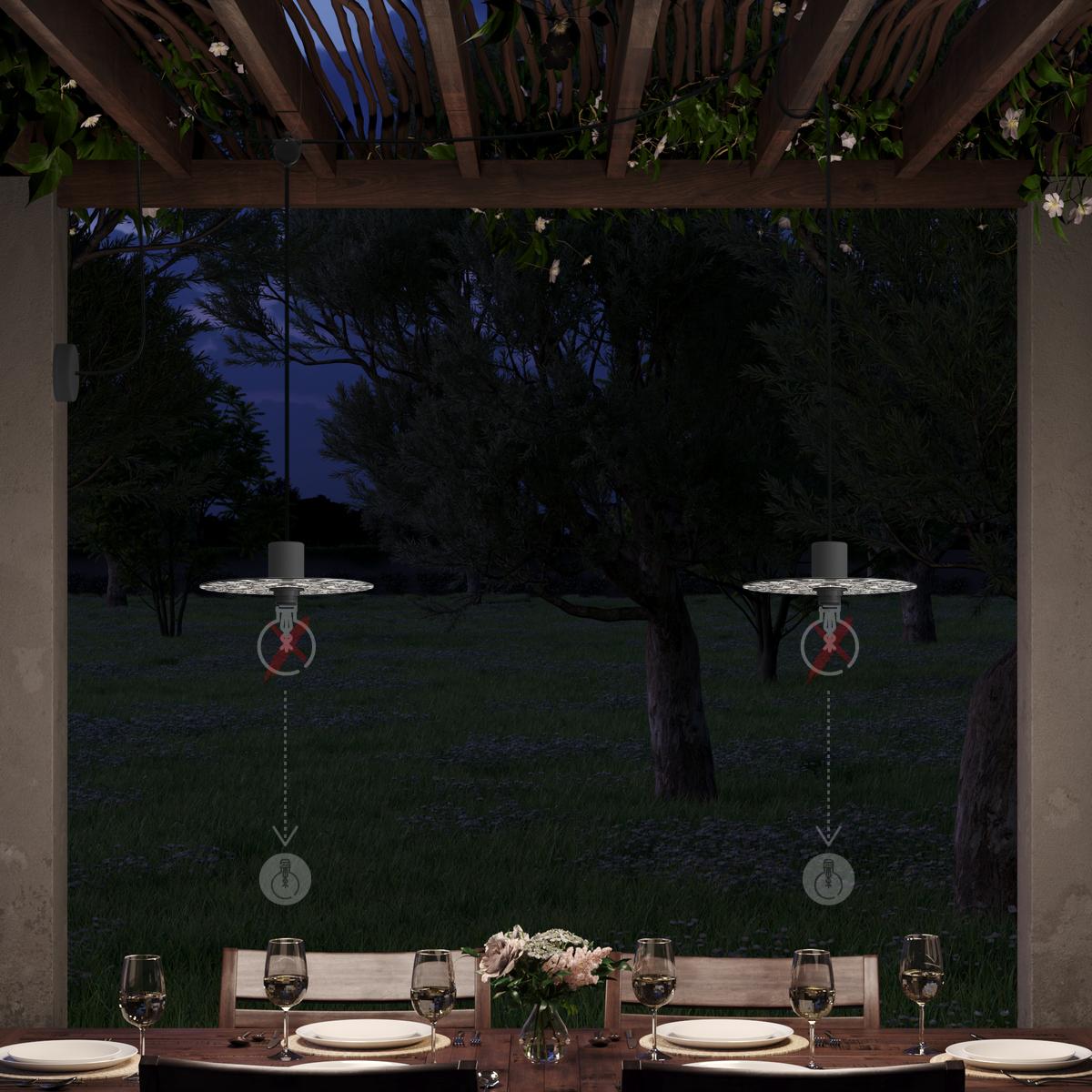 Douille: deuxième bras : 1X [KEIVAEL02BK] EIVA ELEGANT, kit douille d'extèrieur pour abat-jour E27 en silicone - la première douille au monde IP65 qui peut-etre câblée - Finish: Noir