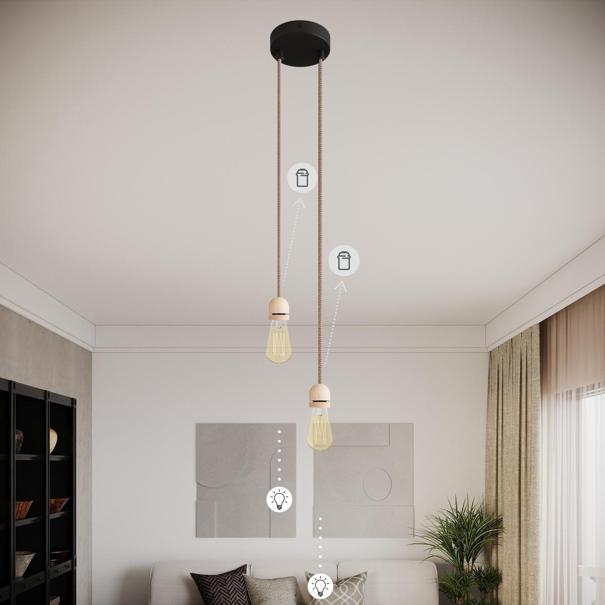 Rechte Lampenfassung : 1X [KBL2117] Kit E27 Gewinde-Fassung x Lampenschirm mit abgerundeter Holzabdeckung, versteckter Zugentlastung und Klemmringabdeckung aus Holz - Finish: Neutral