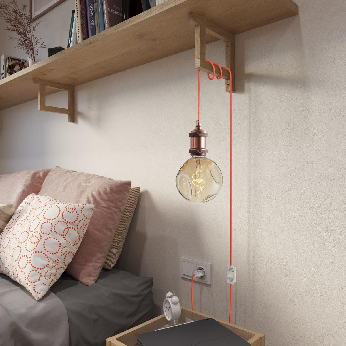 Câble textile : 2.14mt. [XZ2RF15] Câble textile Orange fluo brillant - L'Original Creative-Cables - RF15 rond 2x0,75mm / 3x0,75mm - N° of cores: 2x0.75