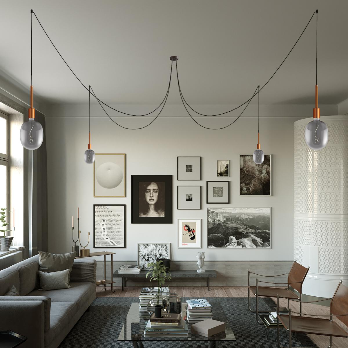 Lampenfassung: 2. Tropfen : 1X [KBM4011RASTERM5] Zylindrisches E27-Lampenfassungs-Kit aus Metall mit 15 cm Kabelklemme - Finish: Brushed copper